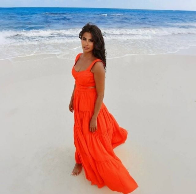 خطفت النجمة روبي الأنظار على شبكات التواصل الاجتماعي، بإطلالتها الأخيرة التي تميزت بأسلوب حيوي ومشرق على شاطئ البحر. اختارت الفنانة المصرية روبي فستاناً فضفاضاً مع فُتحات بارزة عند الخصر وحمّالات عريضة، باللون البرتقالي القوي والذي يليق ببشرتها السمراء.