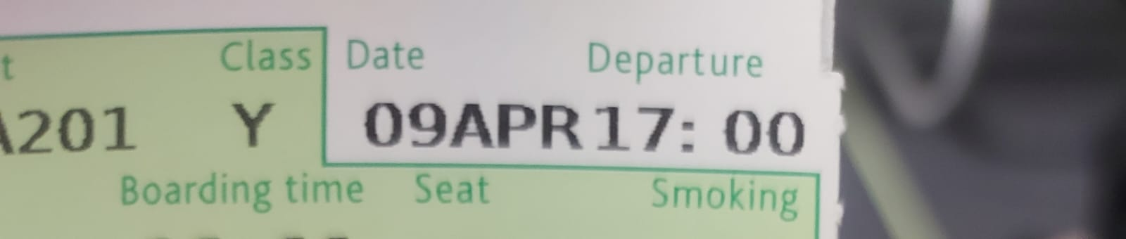 ووسط بكاء الاطفال ولوعة كبار السن، تحدث أحد المسافرين من على متن الطائرة التي مازالت لم تقلع حتى الان، حيث تظهر تذكرة السفر ان موعد الاقلاع محدد في تمام الساعة الخامسة عصرًا.