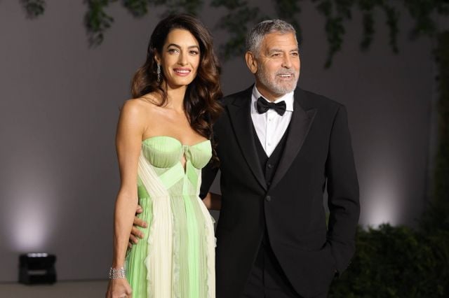 من الناحية الجمالية، تزيّنت أمل كلوني بمجوهرات ناعمة عبارة عن أقراط كبيرة الحجم متدلية. تركّت شعرها الطويل ينسدل على طبيعته على كتفيها، وطبّقت مكياجًا قويًا مع أحمر خدود بارز وأحمر شفاه وردي اللون. بدت في غاية الرشاقة والسعادة مع زوجها، مما يؤكد على متانتها وسعادتها في حياتها الزوجية.
