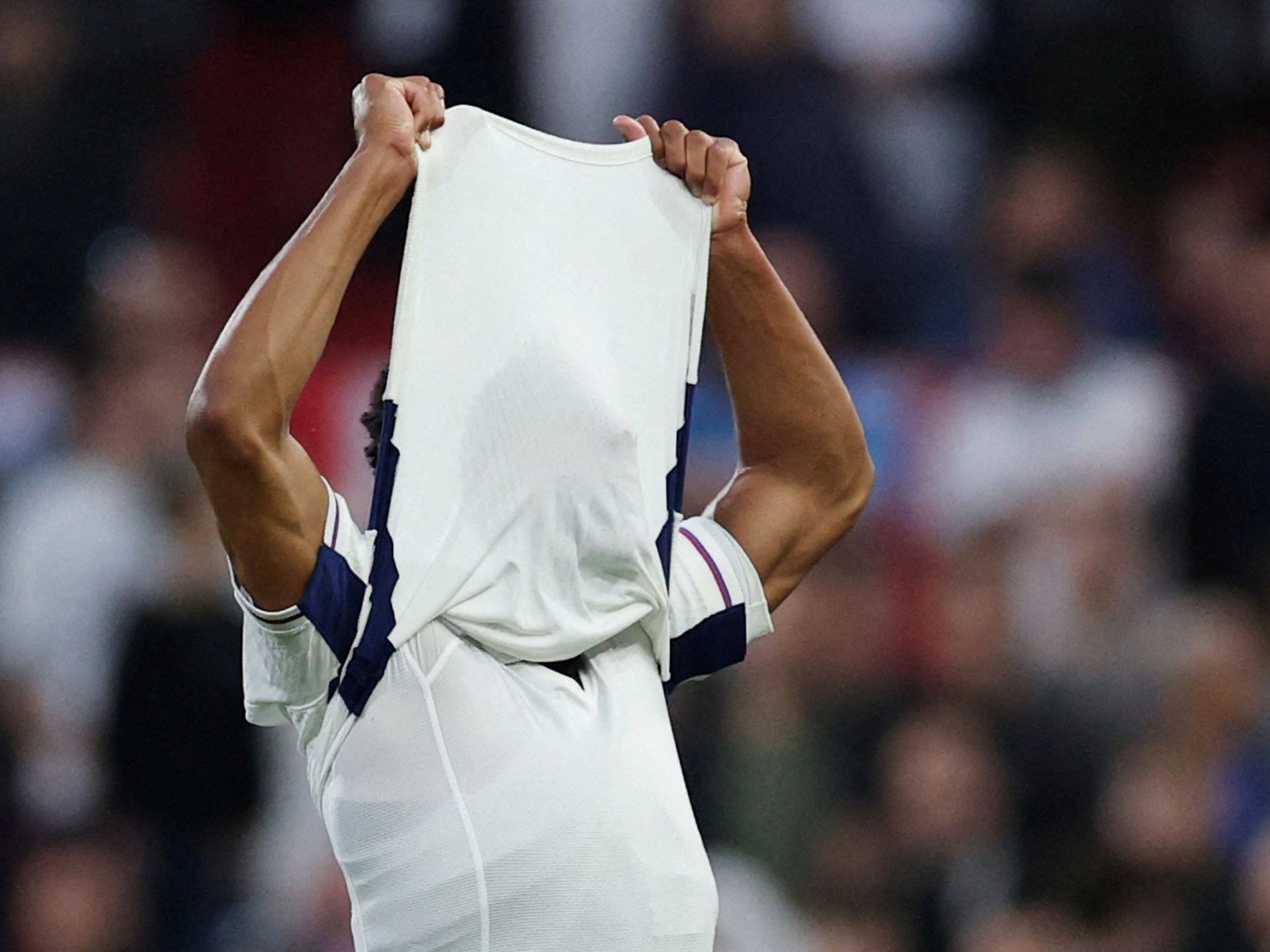 وانفعل بيلينغهام بشكل شديد ضد الحكم خلال المباراة الودية مع السنغال أمس الثلاثاء اعتراضا على إلغاء هدف له بعد تدخل مثير للجدل من تقنية حكم الفيديو المساعد (فار) بسبب لمسة يد من ليفي كولويل.