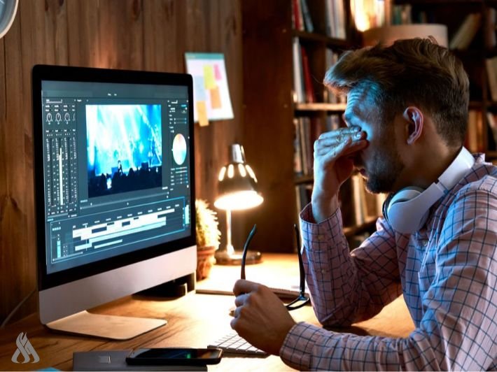 جفاف العين: استخدام الأجهزة الإلكترونية لفترات طويلة يؤدي إلى جفاف العين وفقدان مؤقت لحاسة البصر