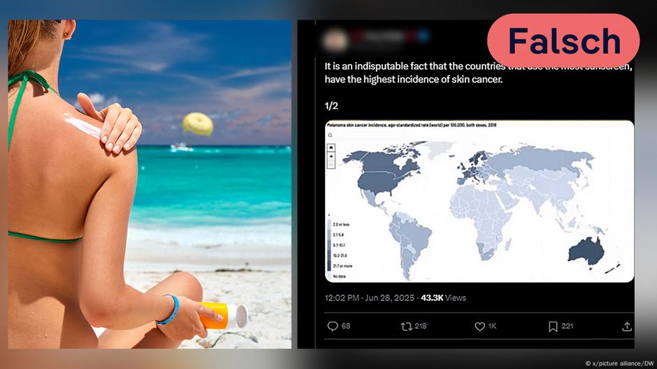 الادعاء: من الحقائق التي لا يمكن إنكارها أن البلدان التي تستخدم أكبر كميات من واقيات الشمس تسجل أيضا أعلى معدلات الإصابة بسرطان الجلد. ” فكلما زاد استخدام الواقي زاد انتشار سرطان الجلد”، هكذا كتب أحد مستخدمي منصة “إكس” الأمريكيين، الذي يتابعه نحو 58,000 شخص في منشور له أواخر يونيو/ حزيران. كما تنتشر على تيك توك مقاطع فيديو تحذّر من خطر مزعوم للإصابة بسرطان الجلد نتيجة استخدام واقيات الشمس.