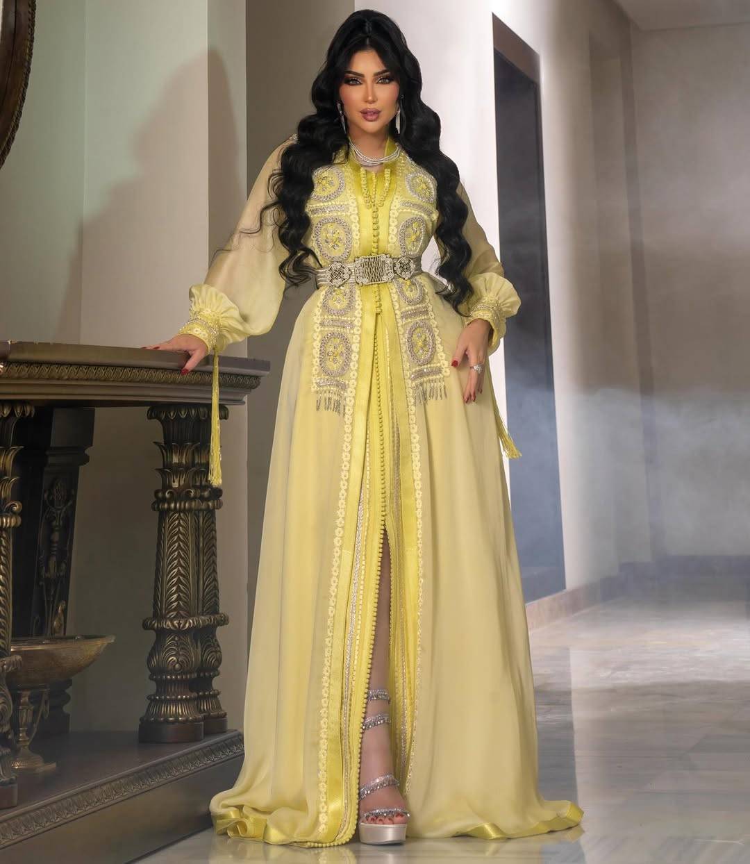 دنيا بطمة تتألق بالقفطان المغربي مع حزام أنيق