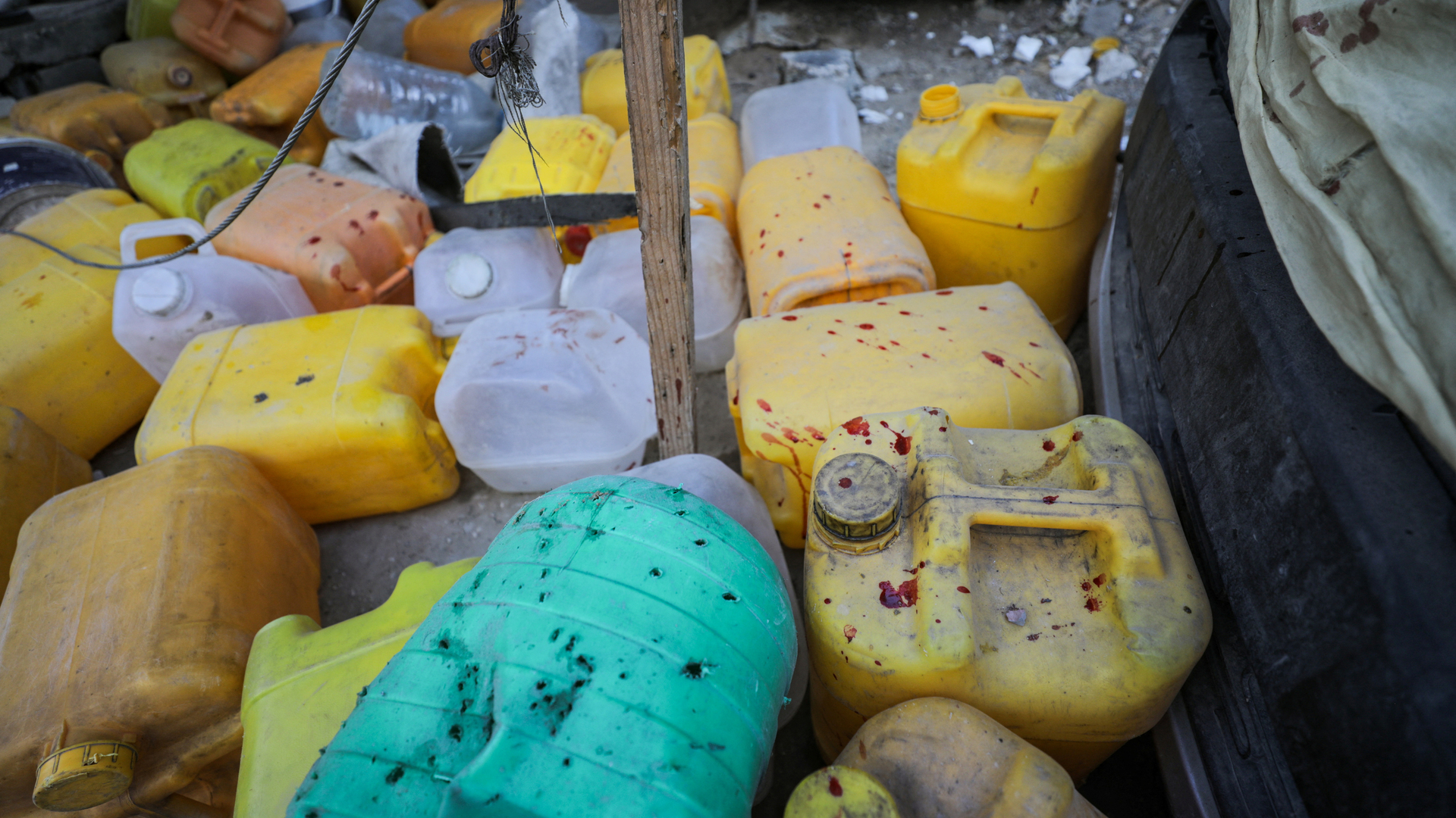 وبين الجوع والعطش، تتوسط شظايا الصواريخ حياة النازحين، موقعة ضحايا كانت أبسط أحلامهم، قطرة ماء، فأصبحوا غرقى في بحر من الدماء.
