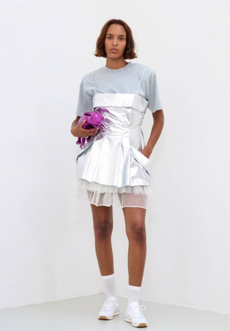 تعكس المجموعة الجديدة، التي شاركت في تصميمها المديرة الإبداعية كارولين كلانتي (ربيع 2026 هو أول تعاون كامل بينهما)، هذا التركيز الإبداعي. وضمت المجموعة ملابس عاطفية من دون أن تكون باهظة الثمن، وسترات راكبي الدراجات النارية المثالية التي أُعيد تصميمها لتتحول إلى فساتين حفلات ضيّقة وتنانير قصيرة.