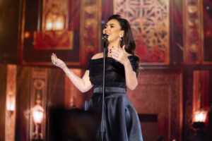 ارتدت مي فاروق فستانًا أسود كلاسيكيًا بتسريحة شعر ستينية، لتضيف لمسة بصرية حملت الجمهور إلى أجواء الحفلات الخالدة. هذا الحضور الأنيق، الممزوج بأداء صوتي قوي، صنع لحظات من النوستالجيا جعلت الحاضرين يعيشون مجددًا زمن الطرب الأصيل.