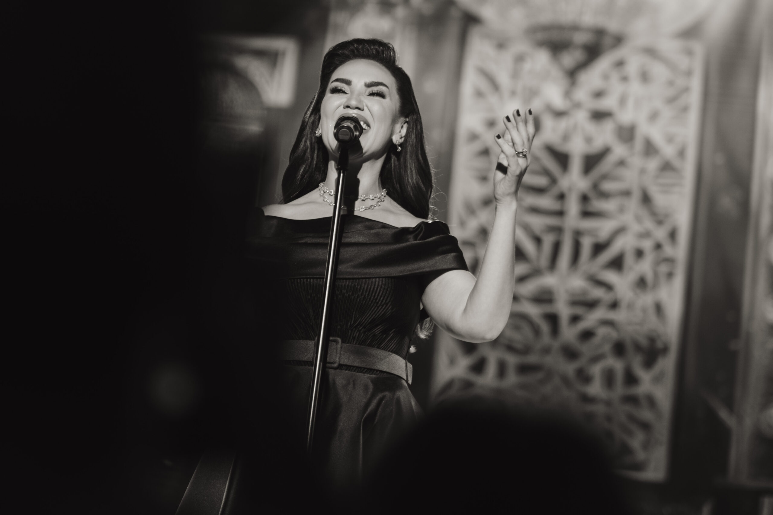 ارتدت مي فاروق فستانًا أسود كلاسيكيًا بتسريحة شعر ستينية، لتضيف لمسة بصرية حملت الجمهور إلى أجواء الحفلات الخالدة. هذا الحضور الأنيق، الممزوج بأداء صوتي قوي، صنع لحظات من النوستالجيا جعلت الحاضرين يعيشون مجددًا زمن الطرب الأصيل.