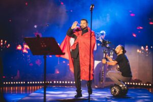 قاد المايسترو محمود عيد الفرقة الموسيقية، فيما أطل آدم ملتحفًا العلم التونسي ليبدأ بأغنية “نحنا سوا”، قبل أن يحيّي الجمهور قائلاً: “أهم يوم بحياتي هو اليوم، لأني موجود بمهرجان قرطاج… سعيد أن أغني أمام جمهور تونسي ذواق.” لتستقبله المدرجات بهتافات وحفاوة كبيرة.