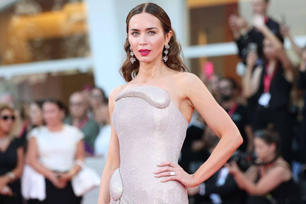 إميلي بلانت، النجمة العالمية، سارت على السجادة الحمراء بفستان لامع من توقيع Tamara Ralph. التصميم الستراتلس الطويل تميّز بتفاصيل هندسية ناعمة، مما أضفى طابعاً معمارياً عصرياً على إطلالتها. دواين جونسون، شريكها، اختار بدلة من Prada جمعت بين الكلاسيكية والهيبة.