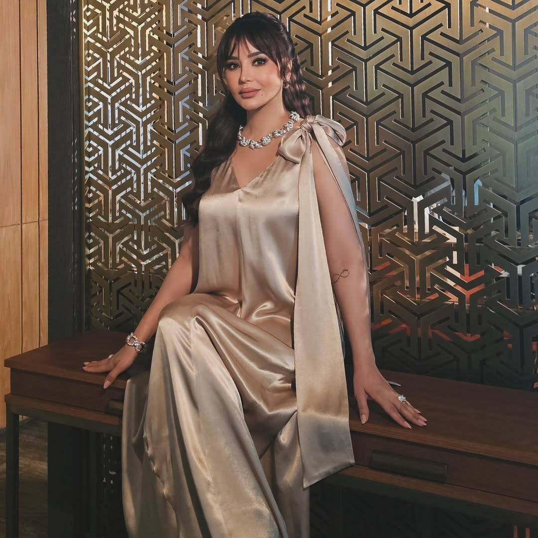 لجين عمران تتألق بفستان ذهبي أنثوي بلمسات فاخرة