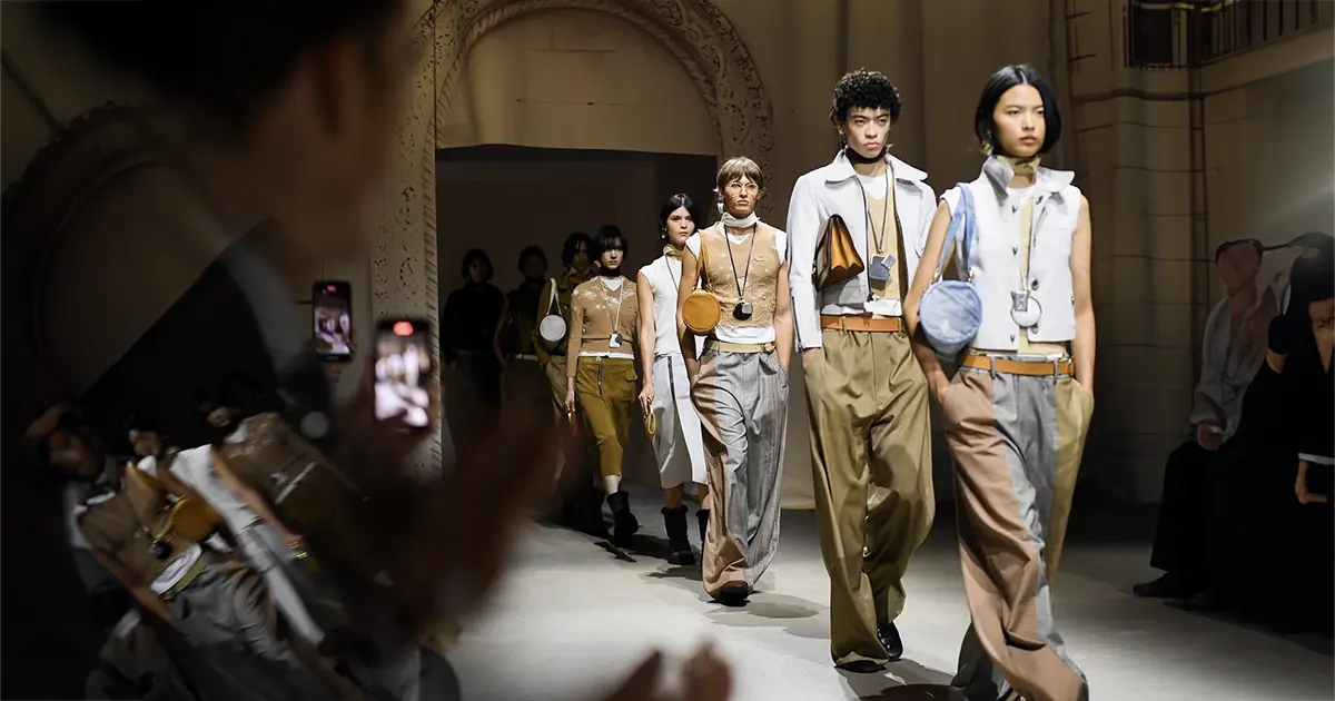 الإكسسوارات: الحقائب الصغيرة جدًا (Mini bags) والقبعات العريضة عادت بقوة، بينما سيطرت المجوهرات البارزة كبيرة الحجم على العديد من العروض.