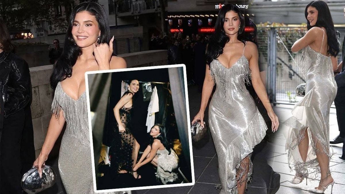 - كايلي جينير: الفضّي يليق بالجرأة – أرتدت فستاناً فضياً لامعاً، مزيناً بشراريب متدلية من منطقة الصدر، أضفت عليه طابعاً استعراضياً هادئاً.