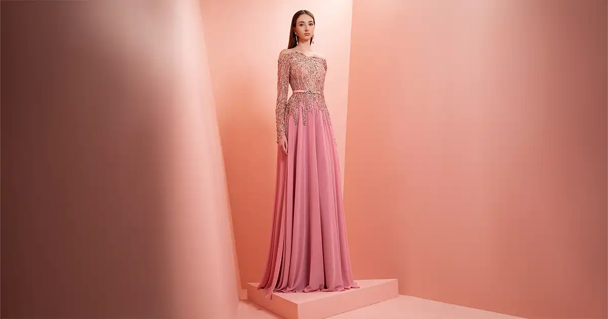تتميز المجموعة بوجود تدرجات ألوان باستلية هادئة مثل الأزرق الفاتح، الزهري، والمشمشي، مما يضفي على الأزياء لمسة من الرقة والجمال. يظهر الأبيض كعنصر أساسي في التصميم، حيث يضيف بريقًا وความ耀ة للألبسة، فيما تعمل لمسات دقيقة من الأسود على إضافة عمق وتوازن بصري راقي يضفي على المجموعة تنوعًا وتألقًا.