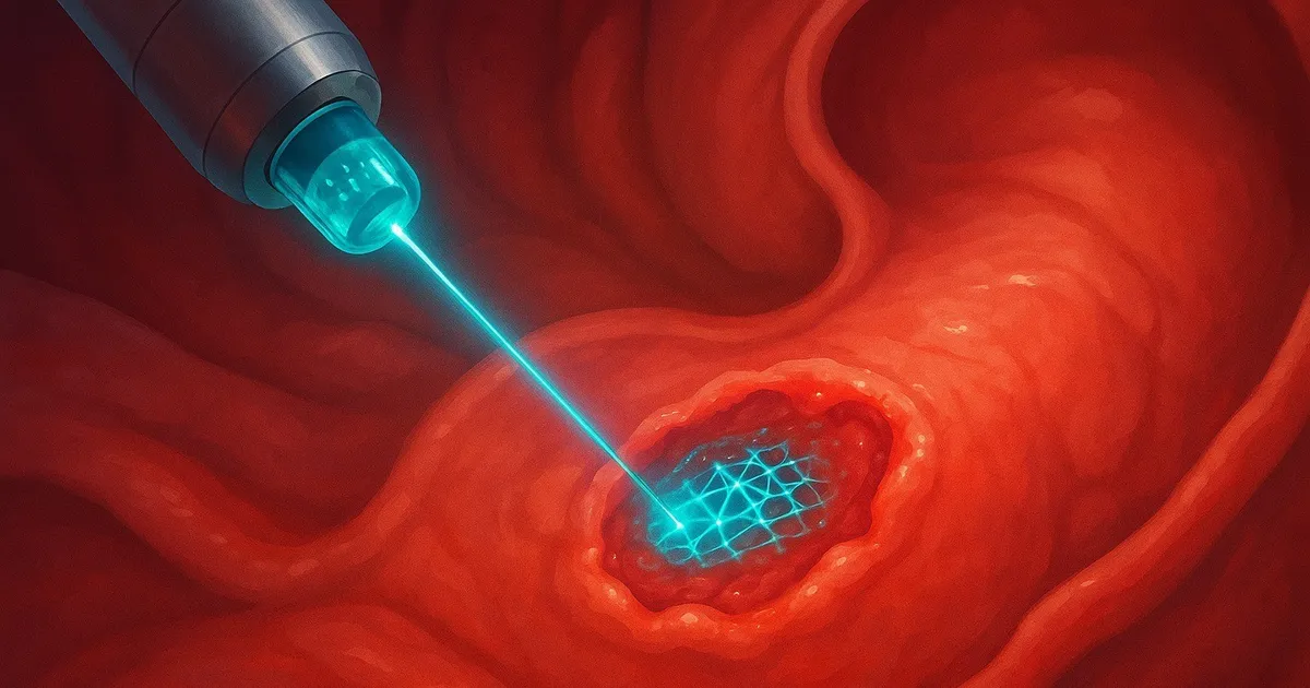 يعمل باحثون على تطوير تقنية طباعة حيوية لتعافي إصابات الجهاز الهضمي، مثل القرحة أو النزيف، من خلال طابعات حيوية قابلة للهضم. هذه الطابعات، التي لا يزيد حجمها عن قرص دواء، يمكن توجيهها إلى أماكن الجروح لطباعة أنسجة لإصلاحها.