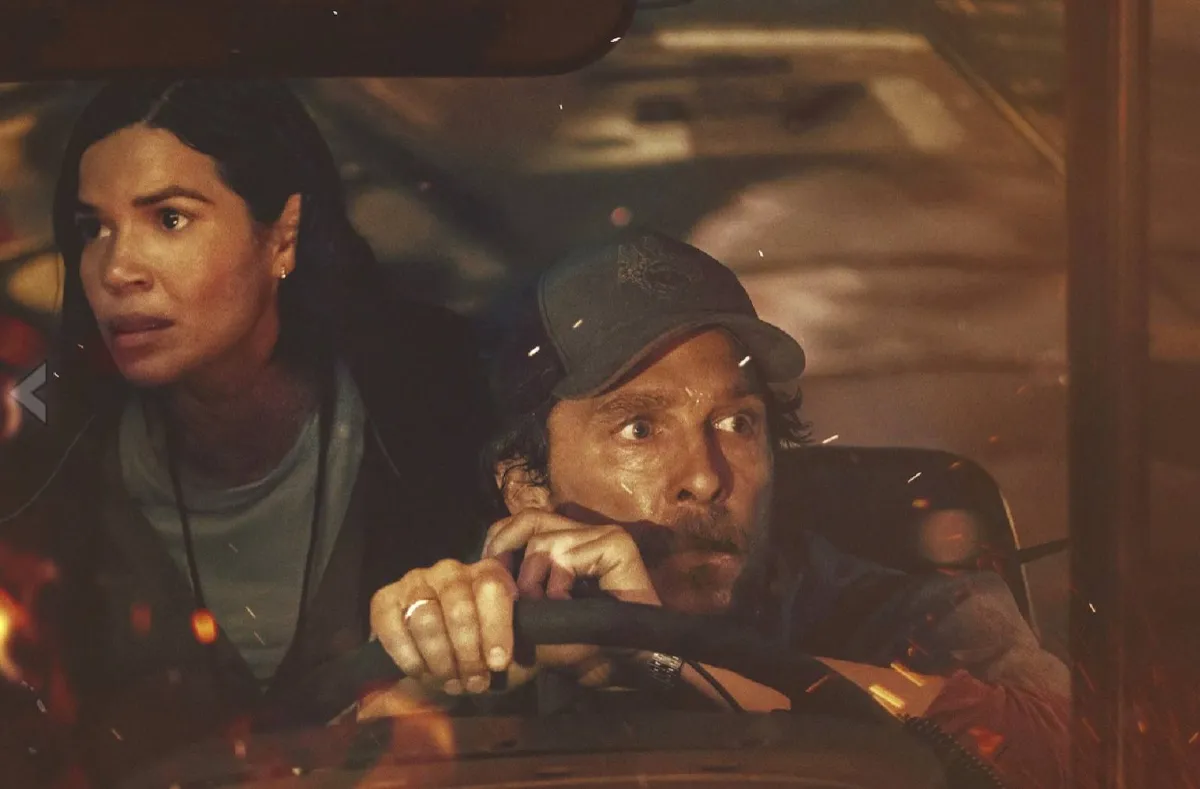 التمهيد مزدوج: لدينا كيڤن (ماثيو ماكونهي)، سائق حافلة مدرسية في بعض ربوع كاليفورنيا، مُرهَق بمشكلات العائلة والفقر الذي يحيط به. والدته مريضة، زوجته مُتبرّمة، وابنه لا يودّ الحديث إليه. ولدينا نار نشبت في وادٍ حرجيّ صعب الوصول إليه، واندلعت سريعاً بسبب الرياح والجفاف. رئيس جهاز الإطفاء في الولاية يُصدر أوامره، لكن النار أسرع من أن تُحتَوى. ما هي إلا ساعات وتتّسع دائرتها في كلّ اتجاه. في هذا الوقت بالذات، تعمد إدارة المدارس إلى جمع التلامذة ونقلهم إلى موقع بعيد نسبياً عن الخطر. كلّ الحافلات وصلت إلى المقر الآمن من مختلف ربوع المنطقة المُشتعلة باستثناء تلك التي يقودها كيڤن. هذا الأخير يحاول جهده الوصول بحمولته من الأطفال (ومُدرّسة) إلى برّ الأمان، لكن النيران تحيط به من كلّ جانب. المشهد الذي يتحدَّى فيه السائق الخطر رائع التنفيذ، مثل كلّ مشهد آخر في هذا العمل.