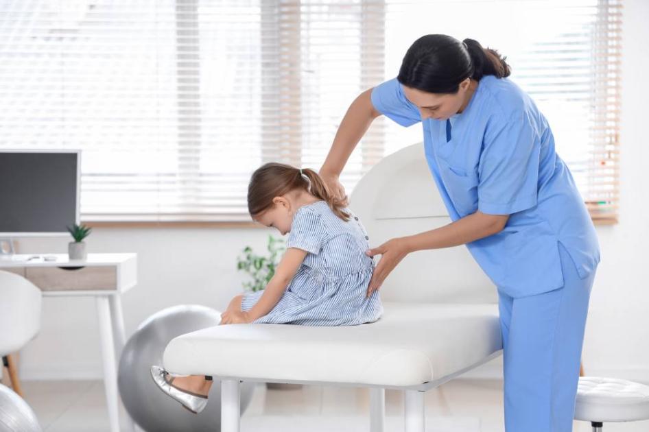 ويضيف: أعراض الإصابة بانحراف العمود الفقري تبدأ بملاحظة الأهل لاختلاف في مستوى الكتفين أو بروز أحد جانبي الظهر، ويعتمد التشخيص على الفحص السريري الدقيق، وتتأكد المشكلة من خلال الأشعة السينية لقياس زاوية الانحراف ومتابعة التطور.