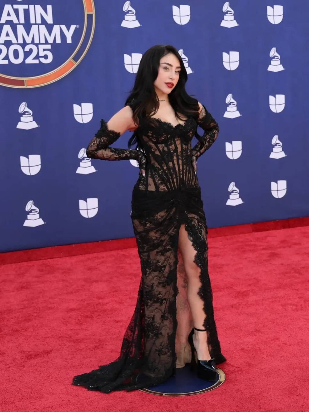 خطفت النجمة الأرجنتينية الأنظار على السجادة الحمراء بفستان أسود جذاب من الدانتيل بتفاصيل شفافة وشق جريء يصل إلى الفخذ. بوقفتها الواثقة وأسلوبها الجريء، أضفت مزيجاً من الأناقة والجرأة على إحدى أهم ليالي الموسيقى اللاتينية، في قاعة “إم جي إم غراند غاردن أرينا” في لاس فيغاس، حيث اعتمدت إحدى أبرز صيحات عام 2025 في الموضة.