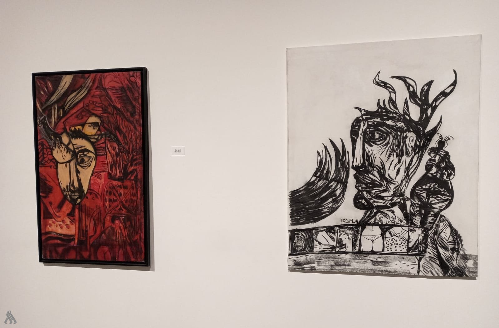 ضم المعرض 16 لوحة من الحجم الكبير، استعرض من خلالها الموسوي ثنائية “الأقنعة” كرمزية لإعادة صياغة شخصية الإنسان في أزمنة وأمكنة متعددة، تعكس تقلبات المشاعر الإنسانية بأسلوب تجريدي وتعبيري فريد.