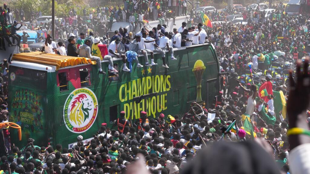 جاب لاعبو منتخب السنغال الثلاثاء شوارع العاصمة داكار في موكب جماهيري حاشد احتفالا بتتويجهم بلقب كأس أمم أفريقيا، إثر فوزهم على المغرب الأحد بالرباط في نهائي مثير شهد فوضى عارمة. عقب ذلك، استقبل الرئيس باسيرو ديوماي فاي "أسود التيرانغا" رسميا بالقصر الرئاسي حيث تم توشيحهم بوسام الأسد اعترافا بإنجازهم.