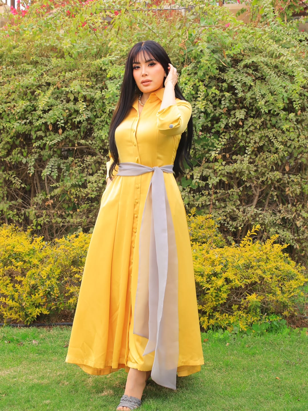 وتماشياً مع ترند الكيس الأصفر الذي تمسك به على أنه حقيبة فخمة من بالنسياغا (Balenciaga)، ابتكرت الفنانة المصرية إطلالتها الجريئة حيث ارتدت فستاناً غريباً مصنوعاً بالكامل من أكياس البلاستيك باللون الأصفر، بـ”لوك” غير تقليدي، واللافت أن الأكياس صُمّمت بطريقة مبتكَرة بأكمام طويلة تنسدل من الأكتاف، وبحركة تشبه طبقات الكشاكش من الأسفل.