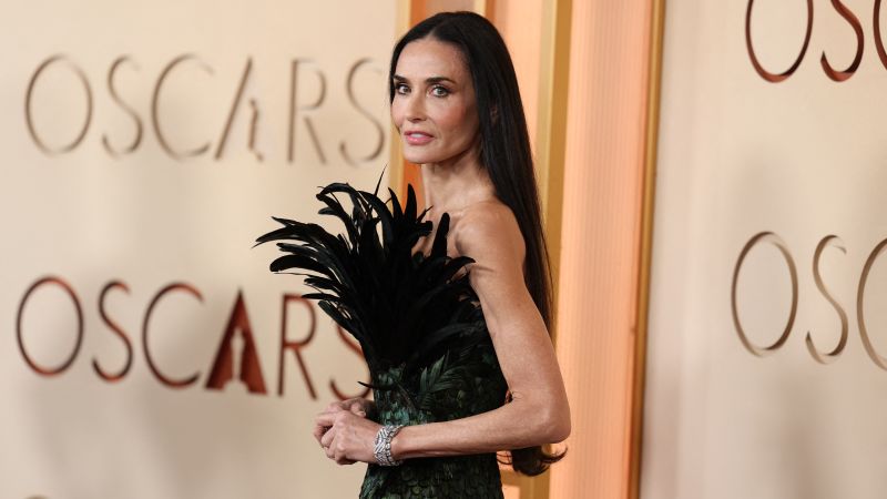 وصلت الممثلة ديمي مور، التي قدمت عرضًا خلال الحفل، مرتدية ثوبًا على شكل طاووس من غوتشي، بعد أسابيع فقط من جلوسها في الصف الأمامي في الظهور الأول المرتقب للمخرجة الإبداعية ديمنا للدار الفاخرة. في ميلانو، عرض المصمم مجموعة فاتنة من الملابس الأساسية في الملاهي الليلية – وسط آراء متباينة – لكن فستان الأوسكار المخصص لمور قدم رؤية مختلفة تمامًا لمستقبل غوتشي. مع صورة ظلية أنيقة مليئة بالريش المعقد، الثوب أيضًا يبدو أنه يشير إلى الريش القزحي الداكن لعرض العلامة التجارية لخريف وشتاء 2012.