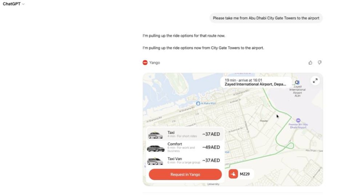 أعلنت شركة «يانغو»، عبر خدمتها «يانغو رايد»، المتخصصة في حجز سيارات الأجرة، عن إطلاق تكامل جديد مع تطبيق «شات جي بي تي»، يتيح للمستخدمين طلب السيارات وتخطيط الرحلات مباشرة من داخل نافذة المحادثة، في خطوة تعكس تسارع التحول نحو الخدمات الرقمية المعتمدة على الذكاء الاصطناعي.